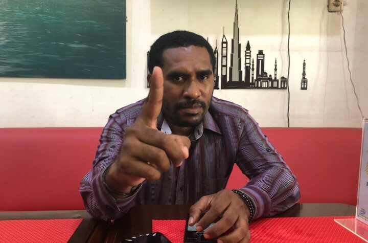 Jayapura – Jefry Wenda yang merupakan Juru Bicara Petisi Rakyat Papua (PRP) mencoba...